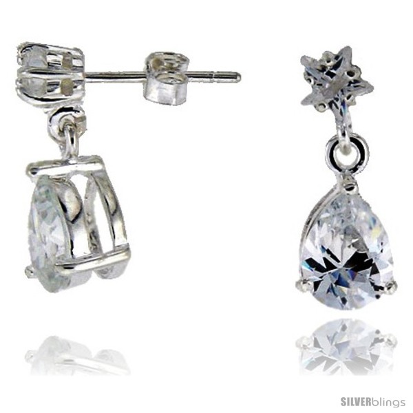 This lovely Drop & Dangle Earrings fashioned in Sterling Silver is beautiful and makes a bold statement of style. Sterling Silver / Cubic Zirconia Dangle Earrings. 2 Stones, a Star Shape 5mm and a 6X8mm Pear Shape. Overall Length:3/4"