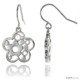 Sterling Silver Flower Hook Earrings, 3/4" (19 mm)