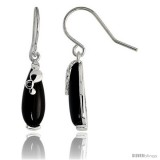 Teardrop Black Onyx Dangle Earrings in Sterling Silver, 3/4" (20 mm) tall