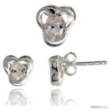 Sterling Silver Matte-finish Fancy Stud Earrings (7mm tall) & Pendant Slide (9mm tall) Set, w/ Oval Cut CZ Stones