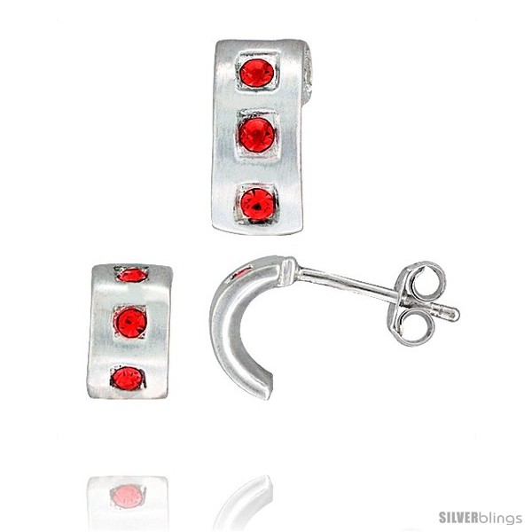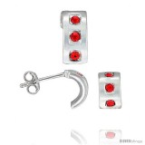 Sterling Silver Matte-finish Half Hoop Earrings (9mm tall) & Pendant Slide (12mm tall) Set, w/ Ruby-colored Brilliant Cut CZ