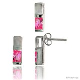 Sterling Silver Matte-finish Rectangular Earrings (13mm tall) & Pendant Slide (13mm tall) Set, w/ Emerald Cut Pink