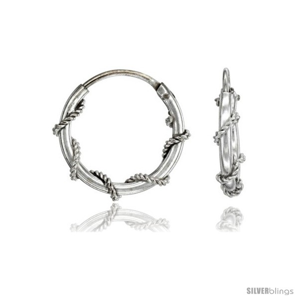 This elegant Endless Hoop fashioned in Sterling Silver is stylish yet sophisticated. Sterling Silver Wire Wrapped Endless Hoop Earrings, 9/16" (14mm) Diameter and the Earring Tube measures little less than 1/16" (1mm) Thin. It is Very Well Made with Excellent Polished Finish.