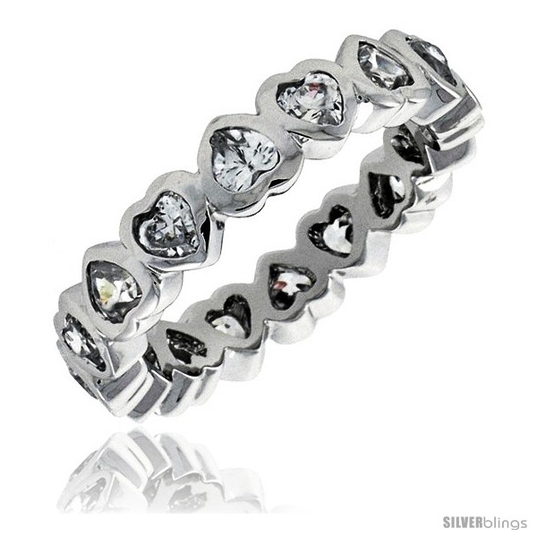 Sterling Silver Cubic Zirconia Eternity Band Ring Heart-shaped 3x3mm Rhodium finish