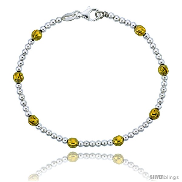 Sterling Silver Polished Bead Bracelet w/ Gold Finish), 3/16 in. (5 mm) wide