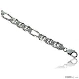 This simple yet authoritative Figarucci Chain made from Sterling Silver is a classic look that complements any attire. This Silver Figaro Chain is Made In Italy, and of Highest Quality. It is 7/16" ( 10.9 mm ) wide and it comes with a Lobster Claw Clasp for Security. Completely NICKEL FREE it won't cause any allergic reactions due to contact with Nickel.