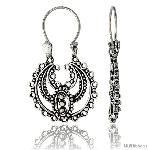 Sterling Silver Filigree Bali Earrings w/ Beads & Circle Cut Outs, 1 1/4" (32 mm) tall