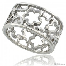 Sterling Silver Ring Flawless finish w/ Flower-shaped Cut Outs, 7/16 in wide