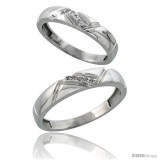 Sterling Silver Diamond 2 Piece Wedding Ring Set His 4.5mm & Hers 4mm Rhodium finish