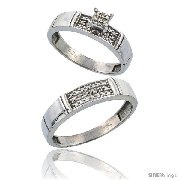 Sterling Silver 2-Piece Diamond wedding Engagement Ring Set for Him & Her Rhodium finish, 4.5mm & 5mm wide