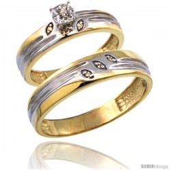 Sterling Silver 2-Piece Diamond wedding Engagement Ring Set for Him & Her Rhodium finish, 4mm & 5.5mm wide -Style Ag023em