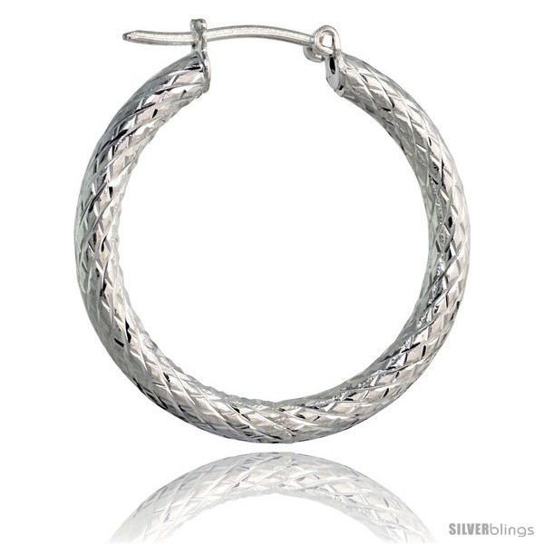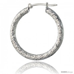 1 1/16" ( 27 mm ) Sterling Silver 3mm Tube Diamond Cut Hoop Earrings
