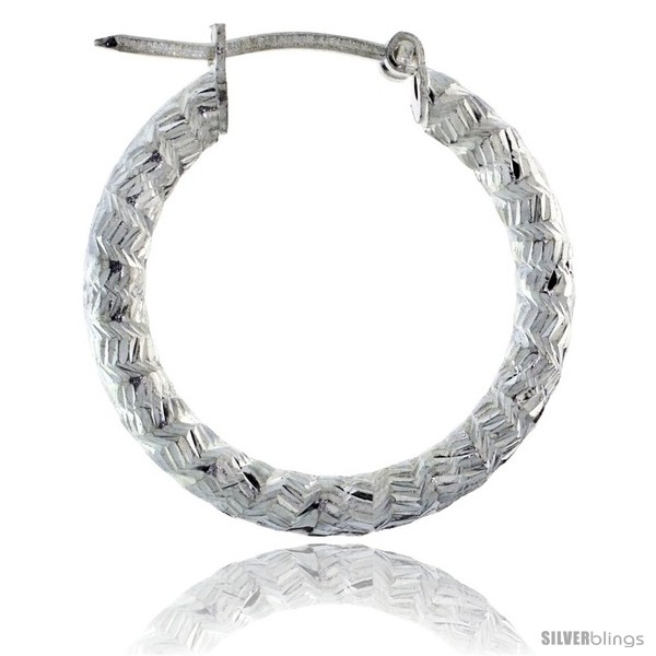 1" ( 25 mm ) Sterling Silver 3mm Tube Zigzag Pattern Diamond Cut Hoop Earrings
