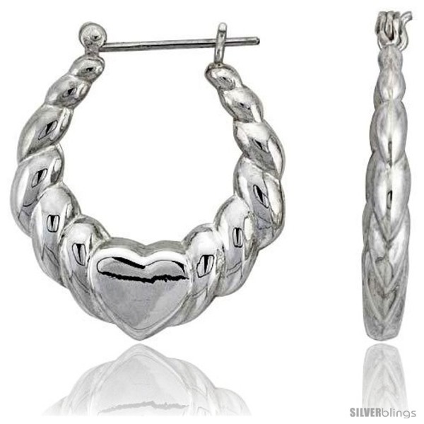 Sterling Silver High Polished Heart Hoop Earrings, 1 3/16" Long