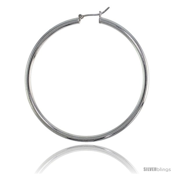 Sterling Silver Italian 3mm Tube Hoop Earrings, 2 1/4 in (57 mm)