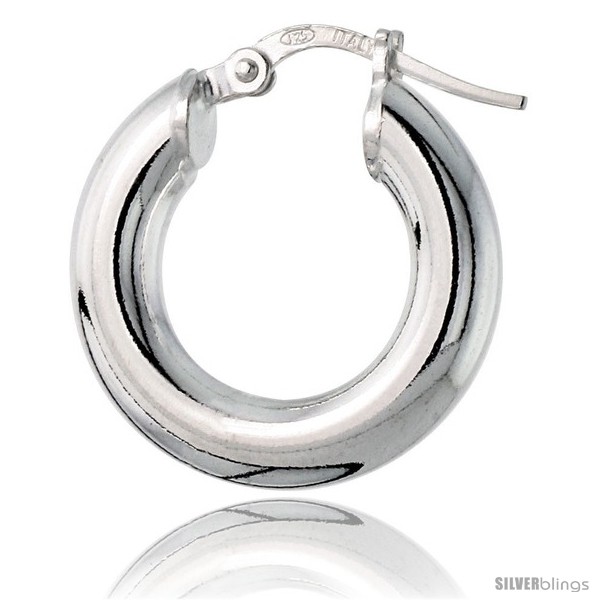 Sterling Silver Italian 4mm Tube Hoop Earrings, 3/4 in (19 mm)