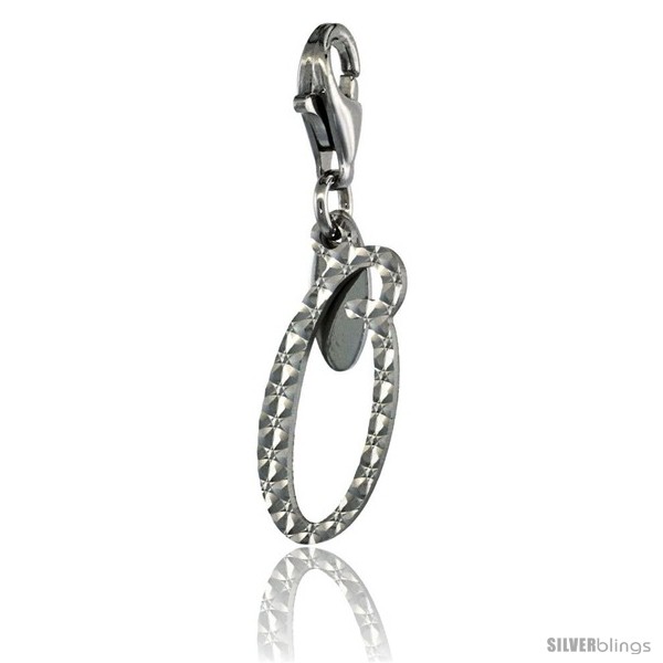 Sterling Silver Script Initial Letter O Alphabet Charm Diamond Cut Finish and Lobster Lock Clasp, 3/4 in