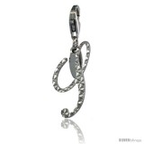 Sterling Silver Script Initial Letter S Alphabet Charm Diamond Cut Finish and Lobster Lock Clasp, 3/4 in