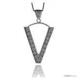 Sterling Silver Cubic Zirconia Block Initial Letter V Alphabet Pendant, 1 5/8 in