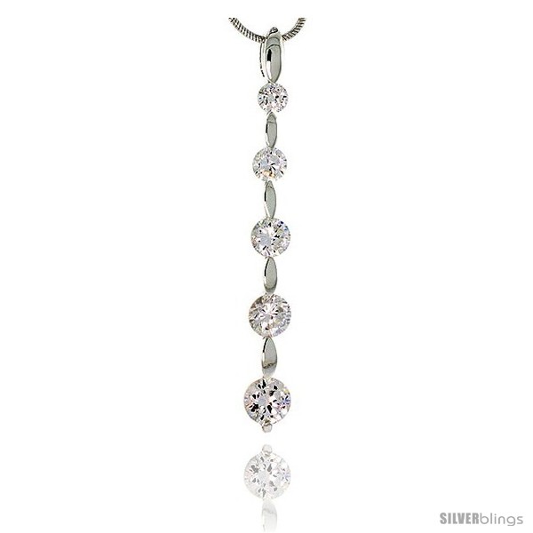Sterling Silver Graduated Journey Pendant w/ 5 High Quality CZ Stones, 1 13/16" (47 mm) tall