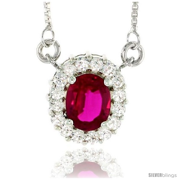 Sterling Silver Journey Pendant w/ 9x7mm Oval Cut Synthetic Ruby & High Quality CZ Stones, 9/16" (14 mm) tall