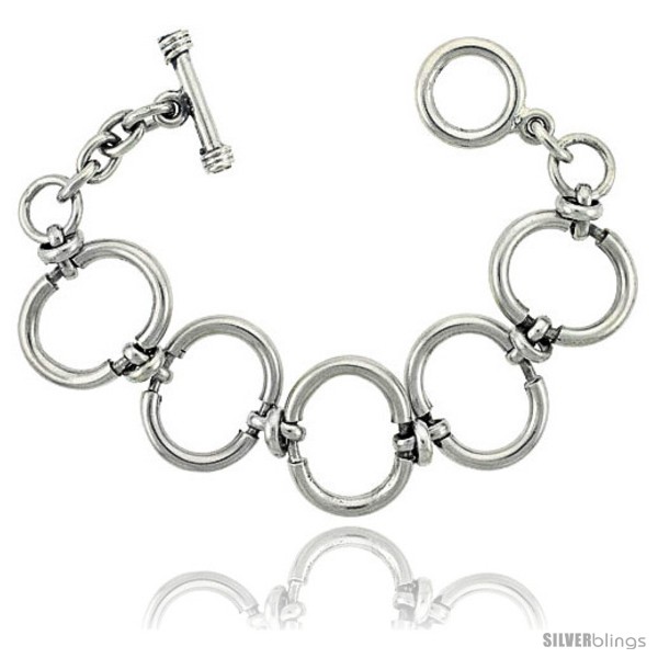 Sterling Silver Oval Cut-out Link Bracelet Toggle Clasp Handmade 1 in wide