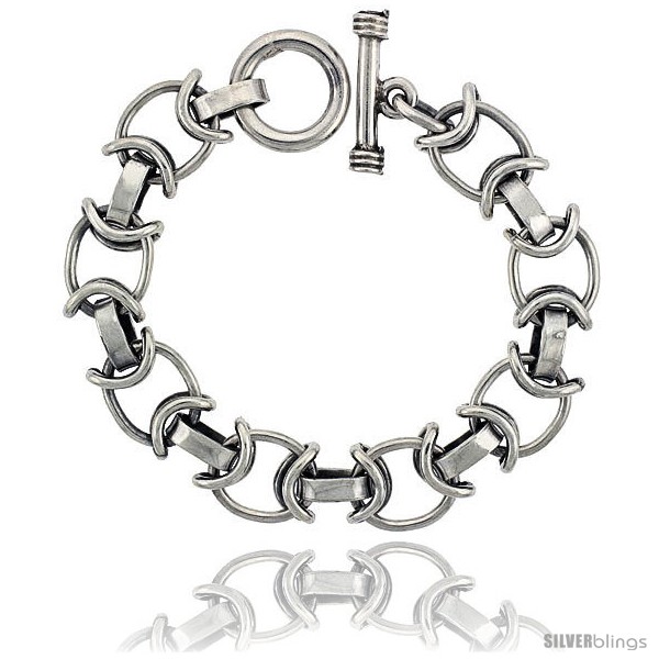 Sterling Silver Oval Link Bracelet Toggle Clasp Handmade 1/2 in wide -Style Lx459