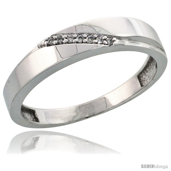 Sterling Silver Men's Diamond Wedding Band Rhodium finish, 3/16 in wide -Style Ag015mb