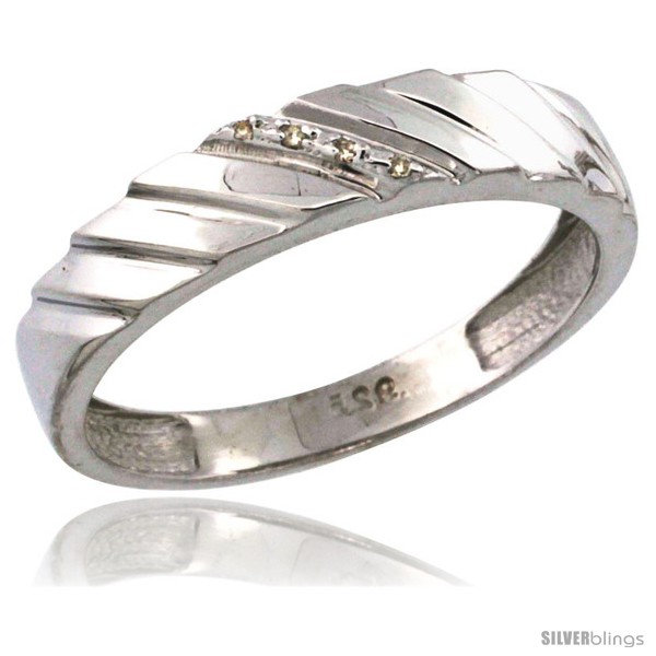 Sterling Silver Men's Diamond Wedding Ring Band, w/ 0.026 Carat Brilliant Cut Diamonds, 3/16 in. (5mm) wide