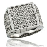 Sterling Silver Men's Large Square Ring 164 Micro Pave CZ Stones, 3/4inch (17 mm) wide