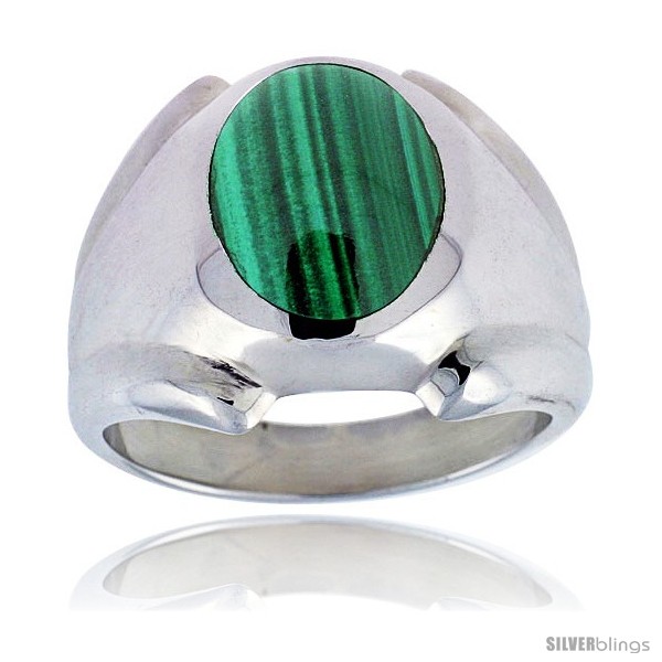 Sterling Silver Oval Malachite Men's Ring 3/4 in. 18 mm