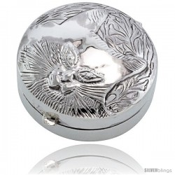 Sterling Silver Pill Box, 1 3/16" (30 mm) Round Shape, Embossed Finish