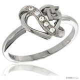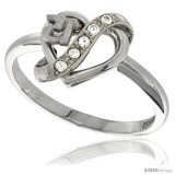 Sterling Silver Quinceanera 15 ANOS Heart Ring CZ stones Rhodium Finished, 15/32 in wide -Style Rzh114