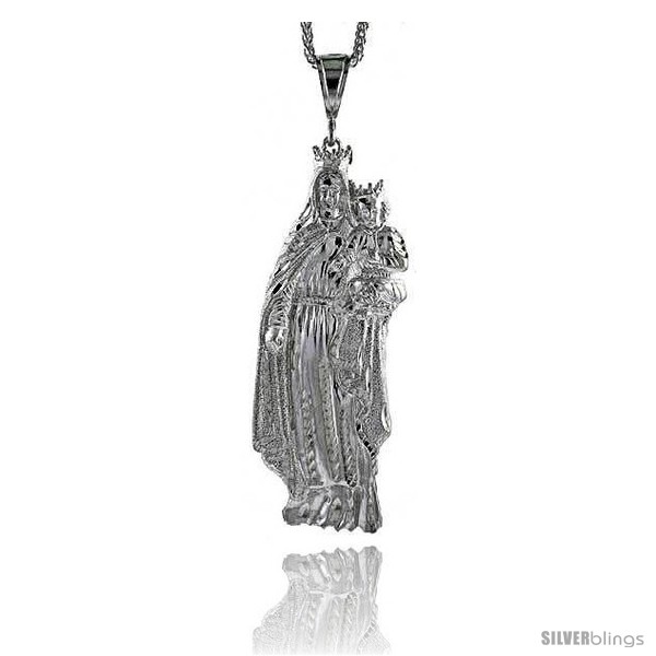 This simple yet authoritative Religious Pendant made with Sterling Silver is subtle and elegant. Sterling Silver Super Extra Large Mary and Jesus Pendant, Diamond Cut Finish, Very Well Made and has a Good Weight and Feel to it. Chain sold separately.