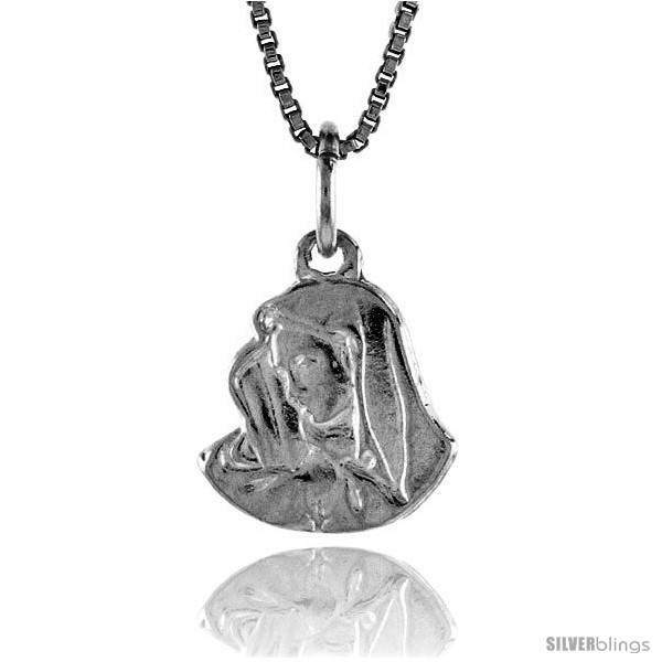 Sterling Silver Mother Mary Pendant, 1/2 in