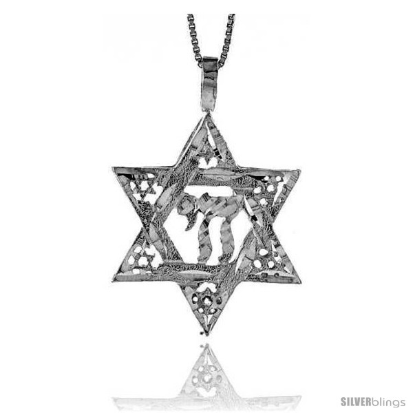 Sterling Silver Star of David with Chai Pendant, 1 1/4 in