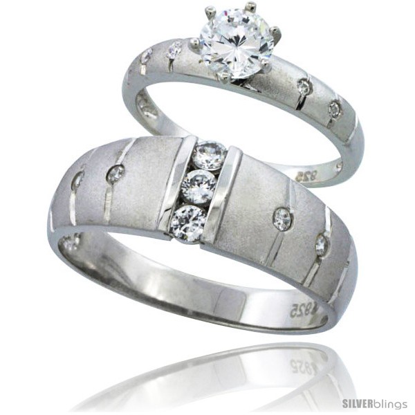 Sterling Silver Cubic Zirconia Engagement Rings Set for Him & Her 1/2 ct size Man's Wedding Band )