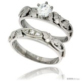 Sterling Silver Cubic Zirconia Ladies' Engagement Ring Set 2-Piece, 3/16 in wide -Style Agcz614e2