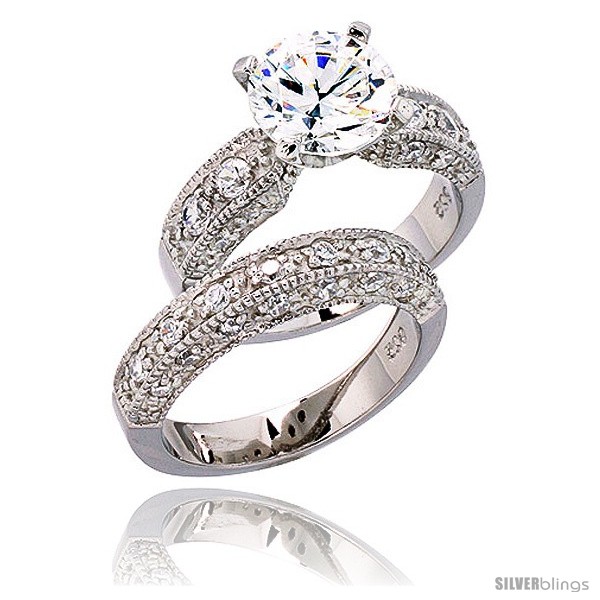 Sterling Silver Vintage Style 2-Piece Cubic Zirconia Ring Set with 9 mm (2 3/4 carat size) High Quality Brilliant Cut Center