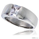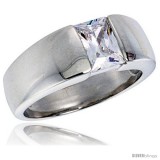 This tasteful Ring for Men crafted of Silver is a gorgeous and makes a bold statement of style. This Beautiful Emerald Cut Men's CZ Ring is casted in Solid Sterling Silver. The CZ Stone is of High Quality, it is Hand Set and the stone measures 8mm X 6mm, it is 1.5 Carat Size. It is Polished Finish with no Nickel or Rhodium Plating to Hide Imperfections. And because it is Not Plated, you won't have any problem of Peeling and Flaking and it is completely Hypoallergenic. This ring is Flawless! Available in sizes 8-13.