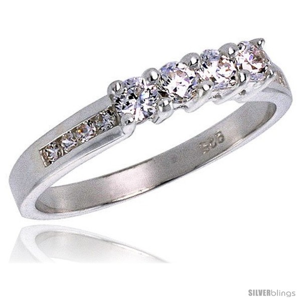 Sterling Silver 1.00 Carat Size Brilliant Cut Cubic Zirconia Bridal Ring, 3/16 in (4 mm) wide