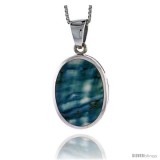 Sterling Silver Oval Shell Pendant, w/ Blue-Green Mother of Pearl inlay, 1 1/16" (27 mm) tall& 18" Thin Snake Chain