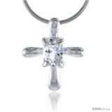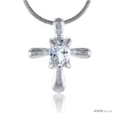 High Polished Sterling Silver 3/4" (19 mm) tall Cross Pendant Slide, w/ 7x5mm Oval Cut CZ Stone, w/ 18" Thin Box Chain