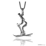 This stylized Sports Theme Pendant made with Sterling Silver is stylish and impressive. Sterling Silver Skier Pendant, Diamond Cut Finish, Very Well Made. It measures a little over 15/16" (24mm) Tall not including the bail. NO Chain Included