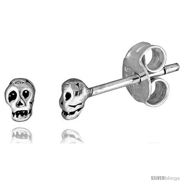 Tiny Sterling Silver Skull Stud Earrings 3/16 in
