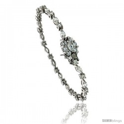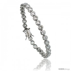This gorgeous and classy Tennis Bracelet fashioned in Sterling Silver is dazzling and charming. This Tennis Bracelet is crafted from Solid Sterling Silver and set with High Quality Cubic Zirconia Stones. The Rhodium Plating makes it Anti-Tarnish and gives it a White Gold Look. It has a Double Lock Feature which provides an Extra Measure of Security. The Price is Very Reasonable for this piece of jewelry which has Outstanding Quality, Setting & Appearance. It will surely make a great present for yourself, family or friends on any occasion.