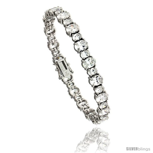 Sterling Silver 28.50 ct. size Oval Cut CZ Tennis Bracelet, 7 in., 9/32" (7 mm) wide