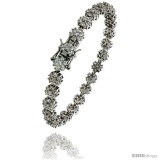 Sterling Silver Tennis Bracelet Cubic Zirconia Stones Flower Design, Rhodium Finish, with Hidden safety clasp, 7 in