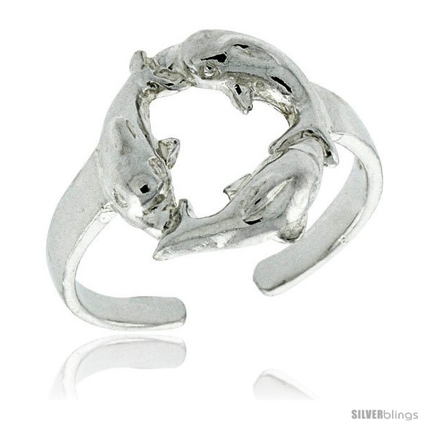 Sterling Silver Triple Dolphin Adjustable (Size 3 to 6) Toe Ring / Kid's Ring, 1/2 in. (12 mm) wide