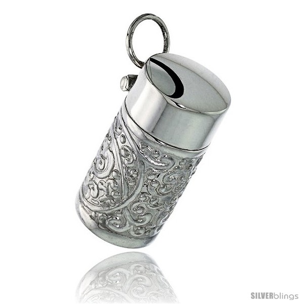 This tasteful Urn Pendant made with Sterling Silver is expressive and bold. This Urn Pendant is crafted from Solid Sterling Silver and embossed with Floral Designs all around. It'll make a cool, reasonably-priced gift for yourself or a loved one on any occasion. A Great Container for a Keepsake to be Treasured Forever. It comes with an 18" thin box chain.